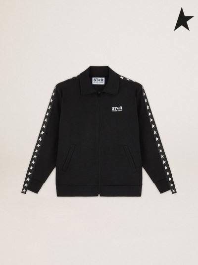 Golden Goose Svart Denis-Stjärniga kollektion zip tröja med kontrasterande vita stjärnor svart
