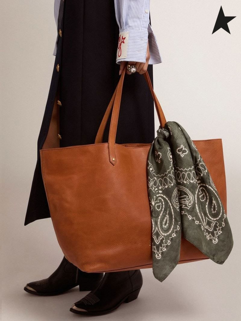 Golden Goose Tan-färgade Pasadena Väska med guld-logotyp på framsidan brun