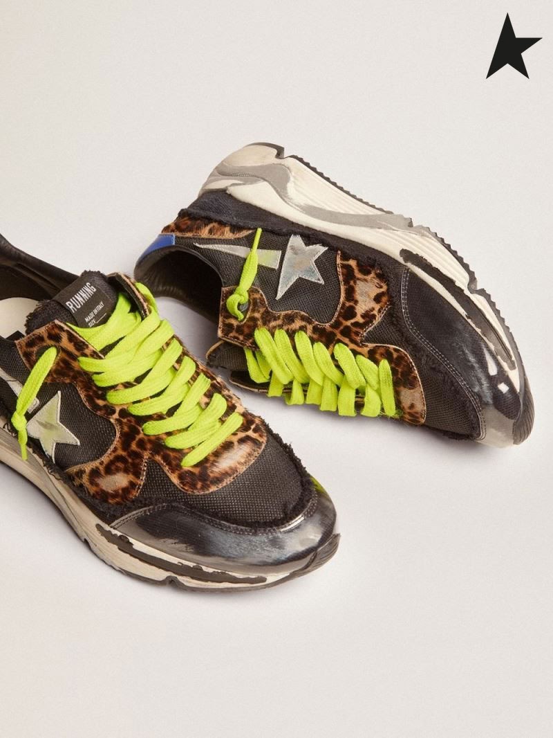 Golden Goose Tunga LTD sneakers i svart mesh med leopard-print ponny hud-skär och silver och laminerat lackläder star svart silver blå Beige