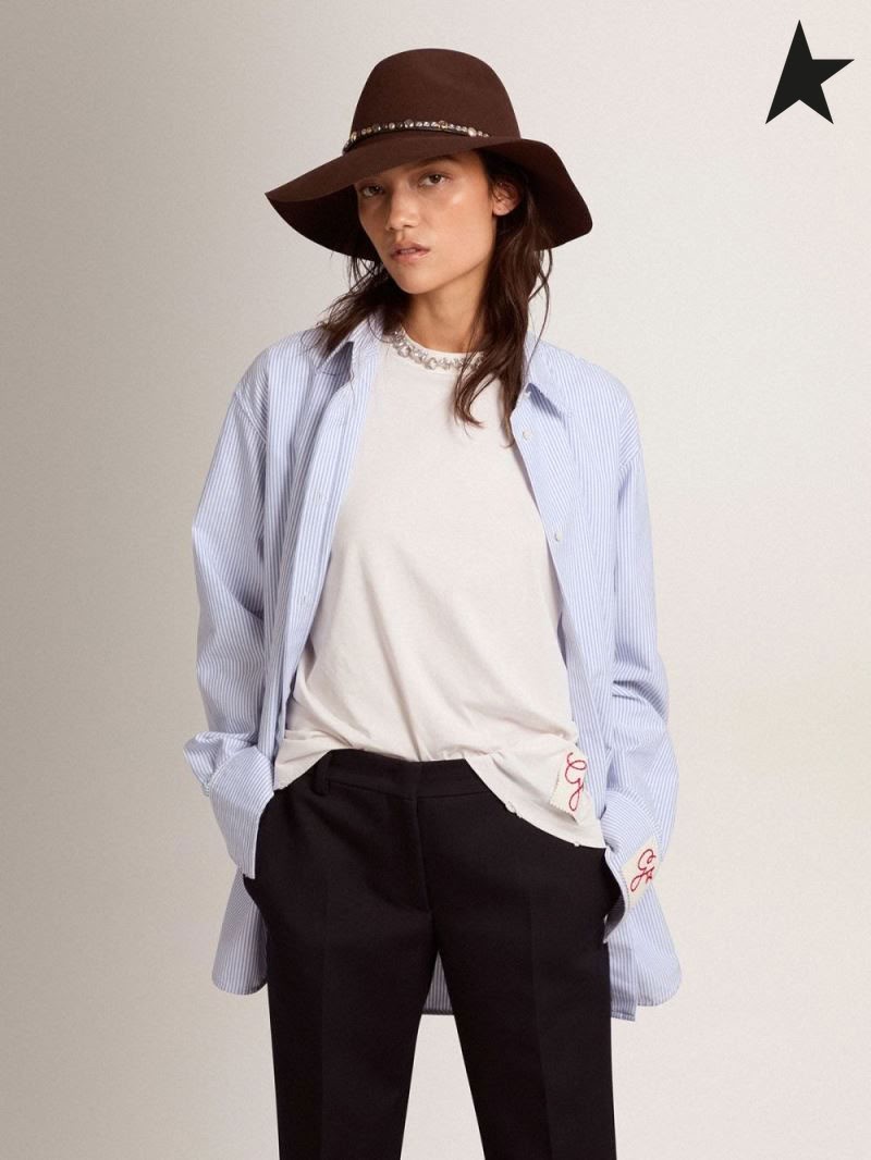 Altın Kaz çizgili gömlek beyaz açık mavi