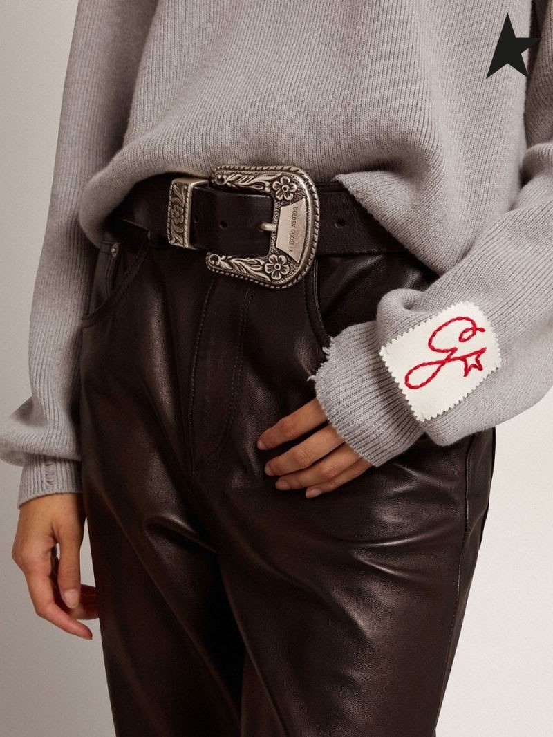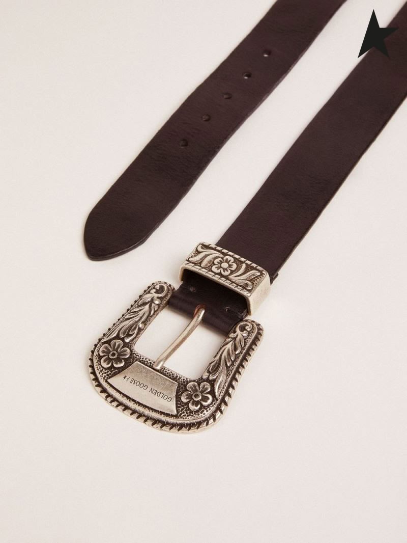 Altın Kaz dantel kemer siyah deri gümüş renk dekore toka siyah