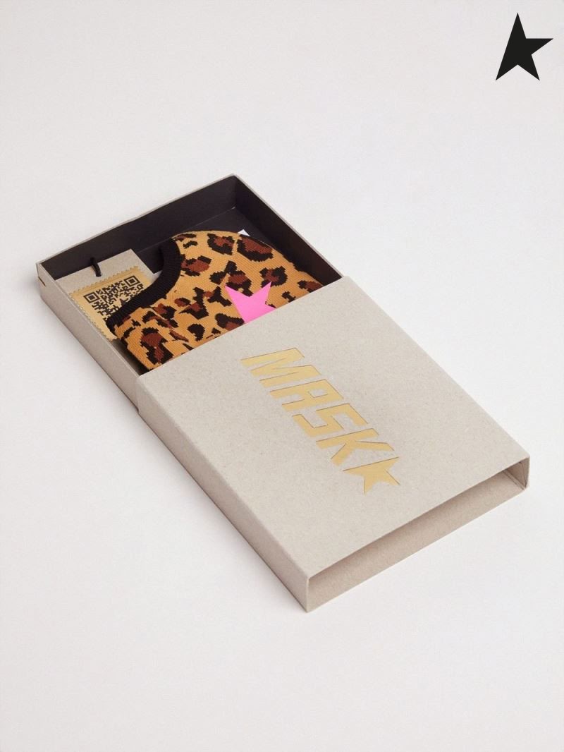 Altın Kaz Leopar desenli Altın yüz maskesi fuşya yıldız kahverengi leopar