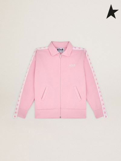 Altın Kaz Pembesi Denise Star collection beyaz şeritli ve zıt pembe yıldızlı fermuarlı sweatshirt