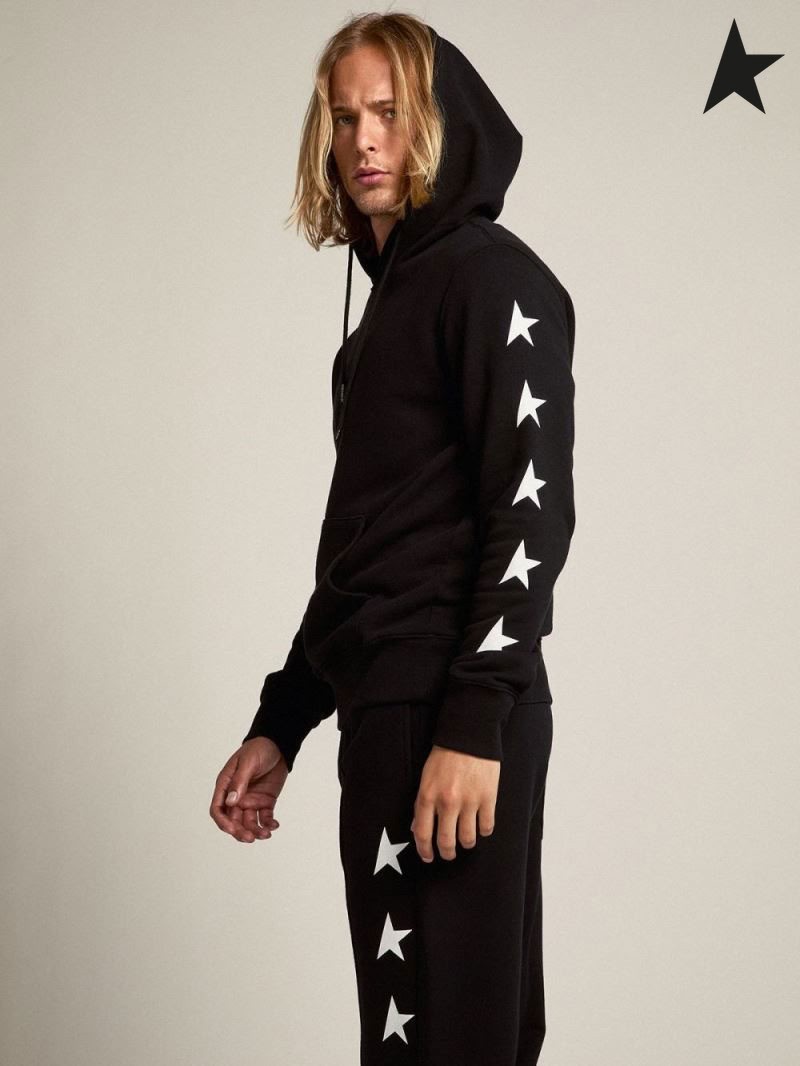 Altın Kaz Siyah Alighiero Yıldız koleksiyonu kontrast beyaz yıldız siyahlı sweatshirt