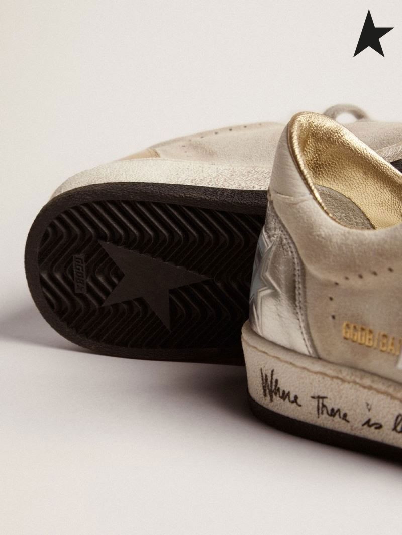 Çok renkli metalik deri ekler ile beyaz süetten altın Kaz Topu Yıldız spor ayakkabı beyaz pembe mavi
