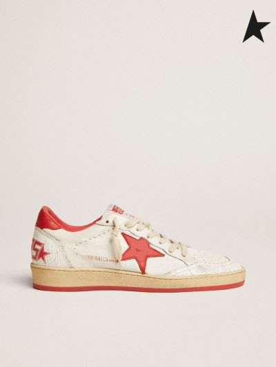 Kırmızı yıldız ve topuk tırnağı beyaz olan deriden altın Kaz Beyaz Top Yıldız spor ayakkabı