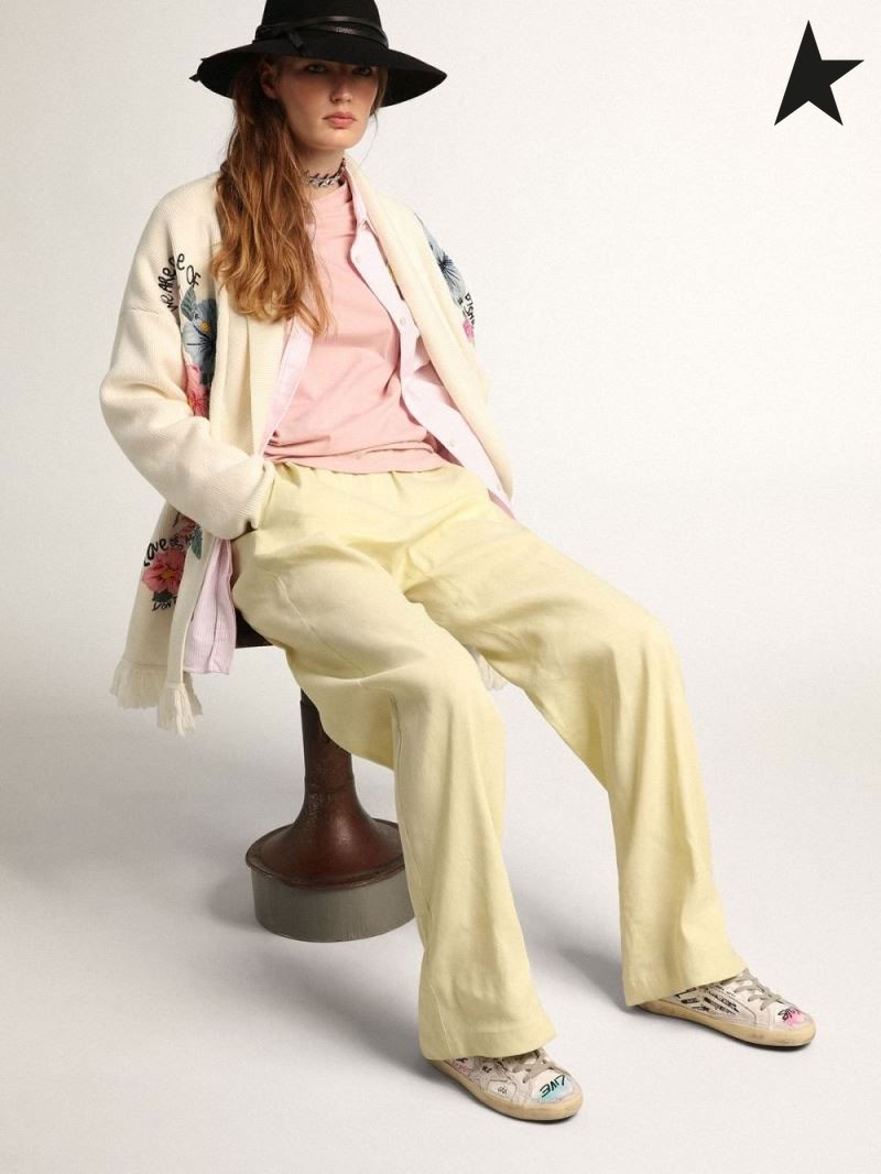Ters yapılı ve gizli çok renkli kırmızı detaylara sahip beyaz renkte Golden Goose Super-Star Dream Maker spor ayakkabı